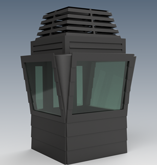 The negative slope of the window glazing adds crucial space to the interior of the guard house, which also deprives an attacker of the advantage of reflection at the same time.